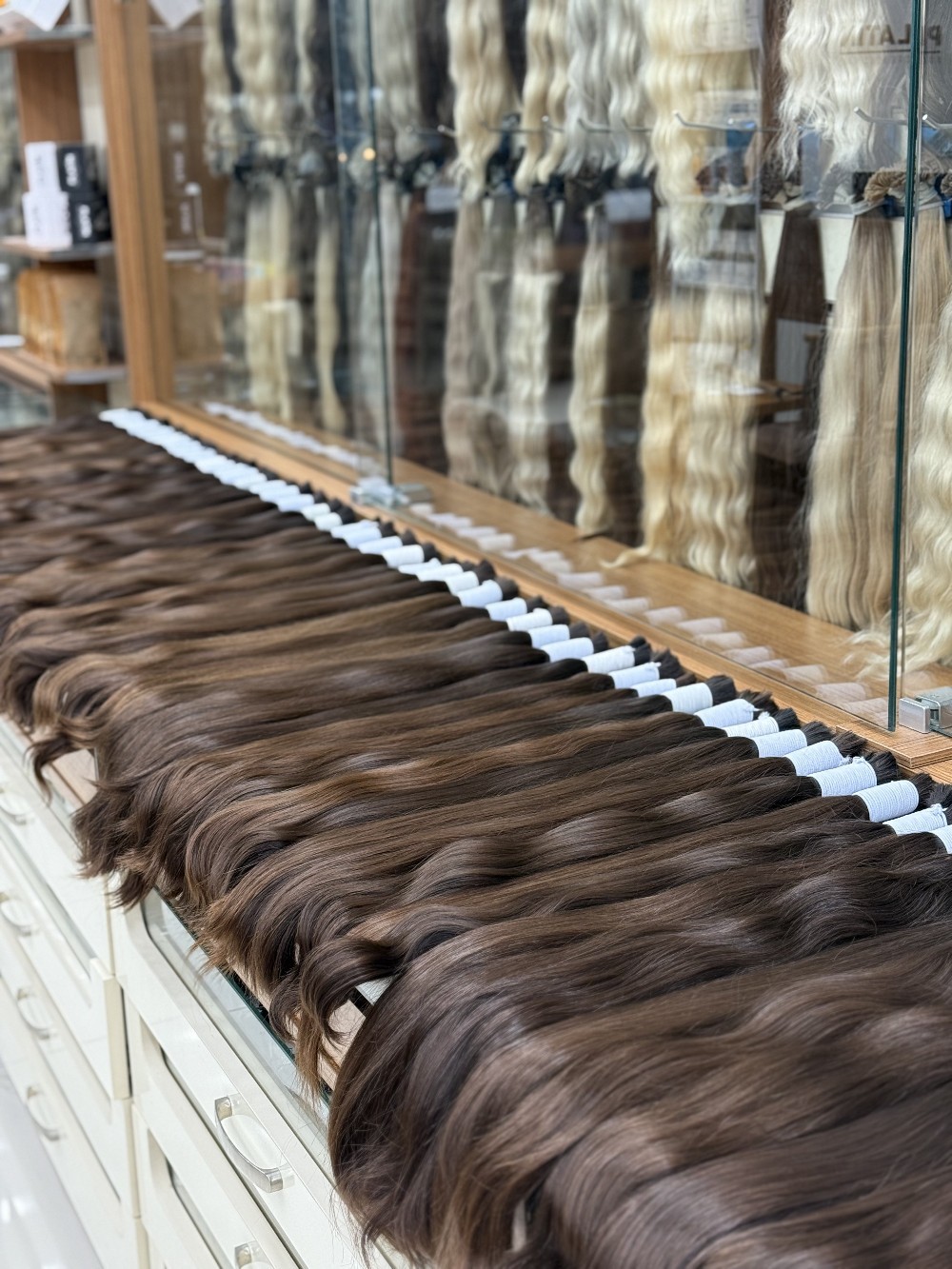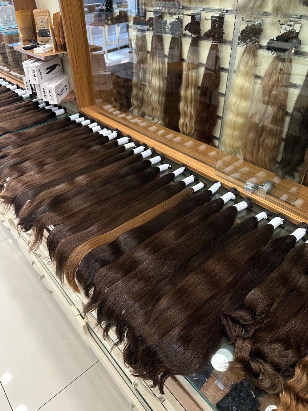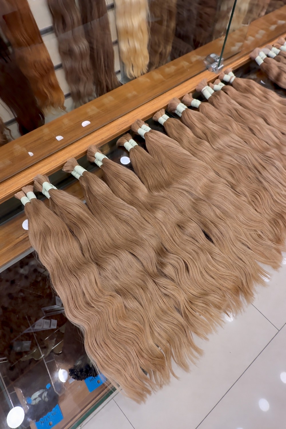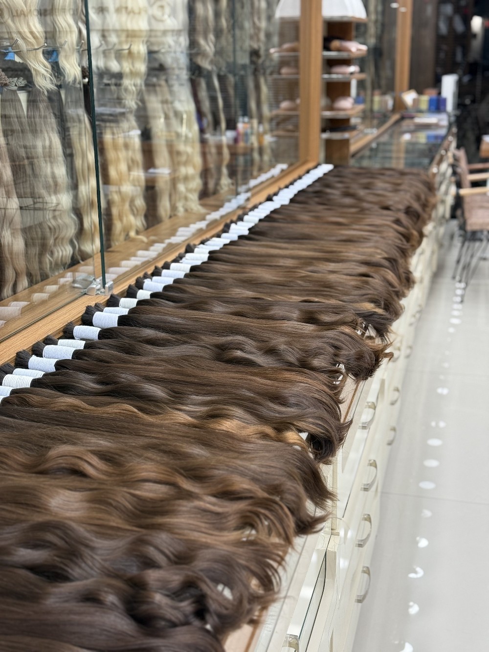 The Bulk Hair we use is first-quality Middle Eastern hair carefully collected from Turkey, Iran, Iraq, and Syria. One of its most distinctive qualities is its soft, shiny, and naturally flexible structure. Unlike some other hair types, it does not carry the thick, coarse feel often associated with lower-grade alternatives. It is an ideal choice for professionals who want to create extensions while preserving the most natural appearance possible.