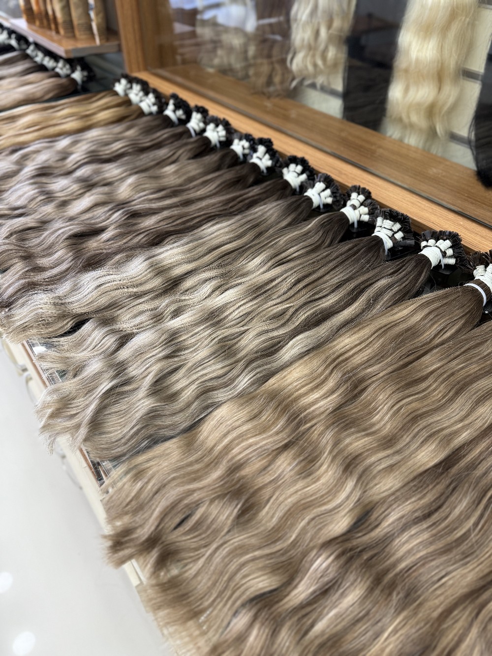 The keratin hair in our collection is produced from carefully selected premium Middle Eastern hair sourced from Turkey, Iran, Iraq, and Syria. Its natural softness and flexibility make it perfectly suited for keratin applications. It is fully compatible with professional salon procedures such as coloring, lightening, blow-drying, curling, and perm treatments, while helping preserve its structure and shine after application.